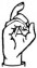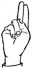 На ћирилици написано РУМЕНА БРАДИЋ састоји се из 12 слова [?]. Исписано ћириличном једноручном азбуком за глувонеме: